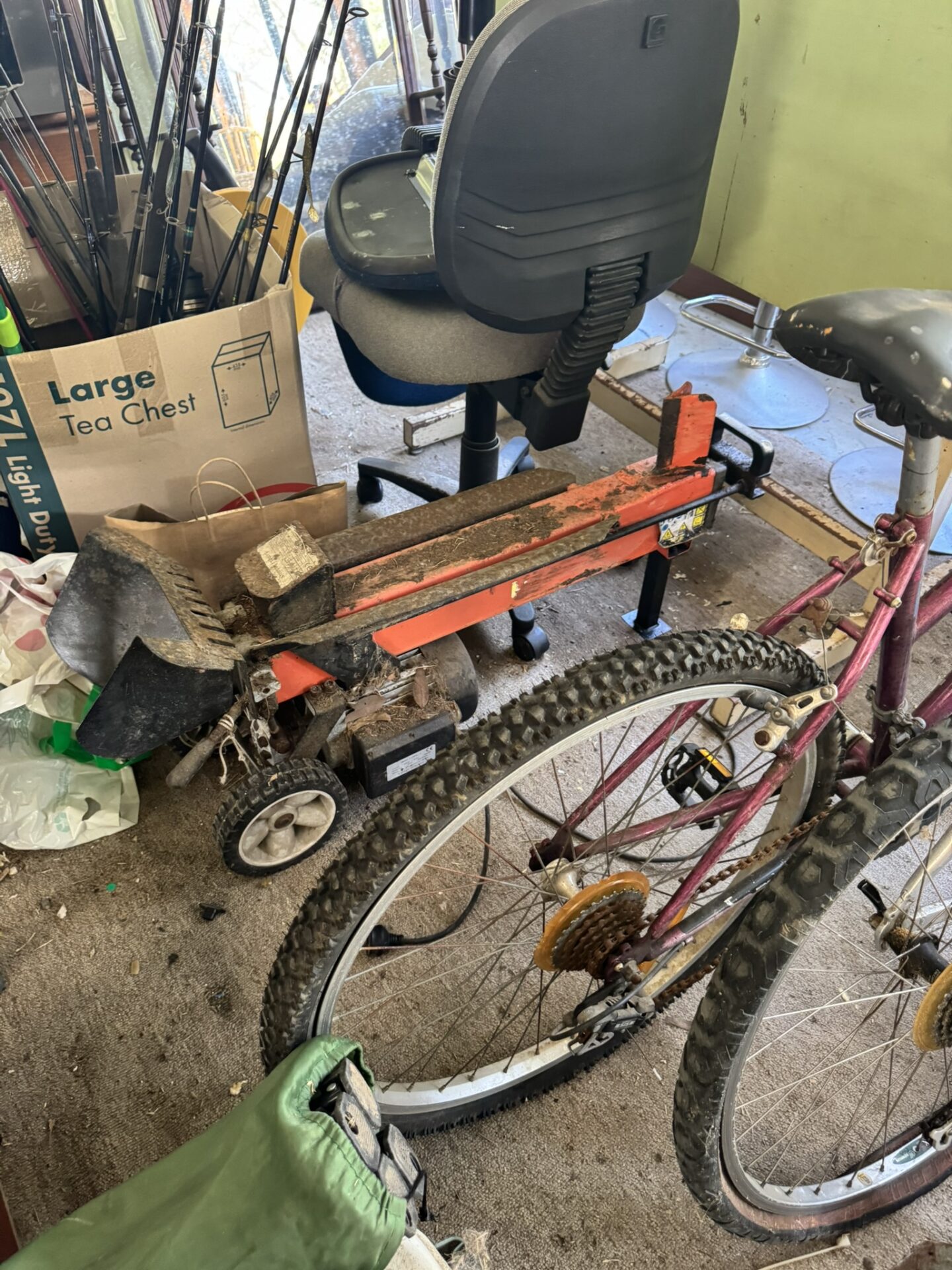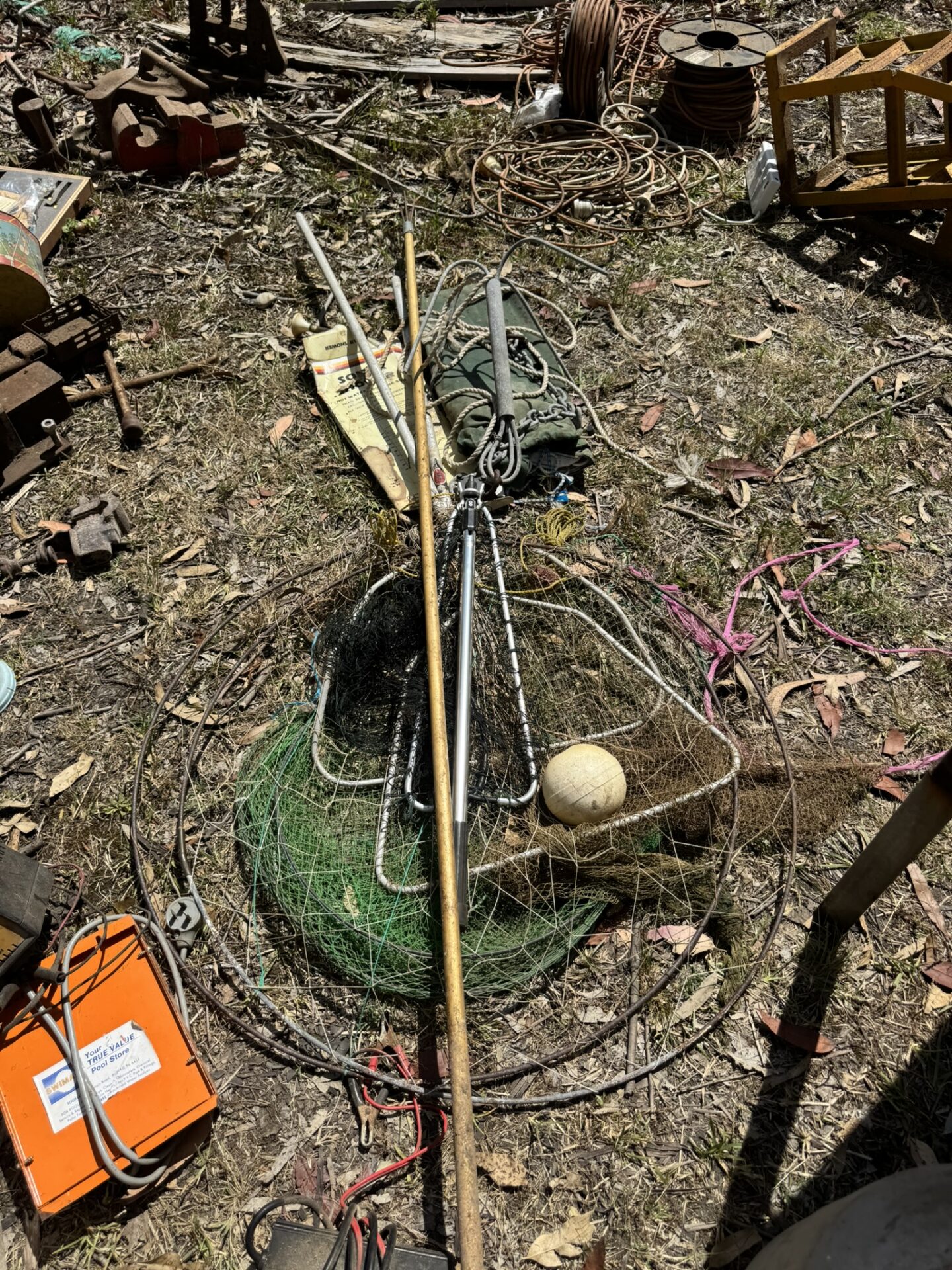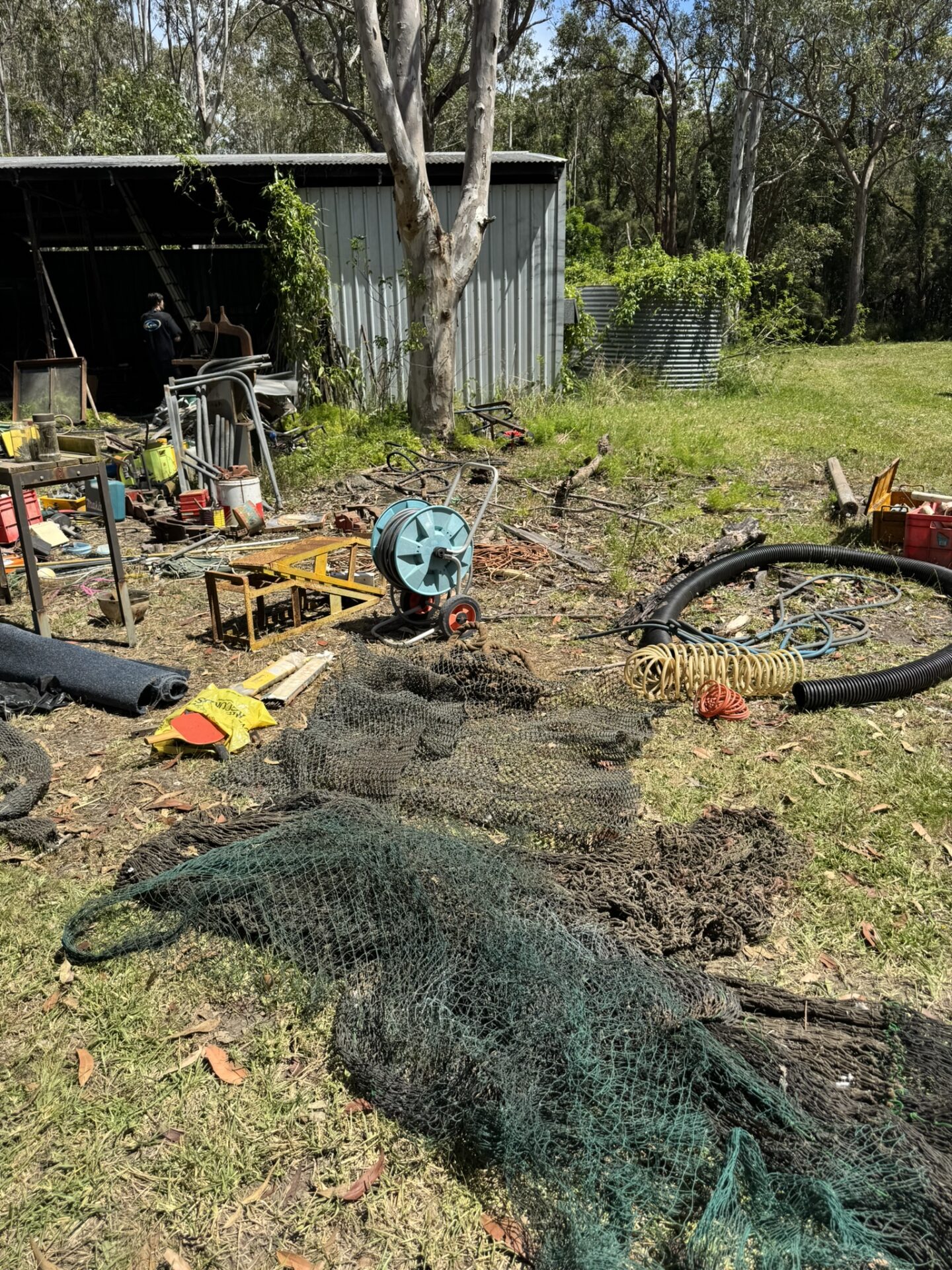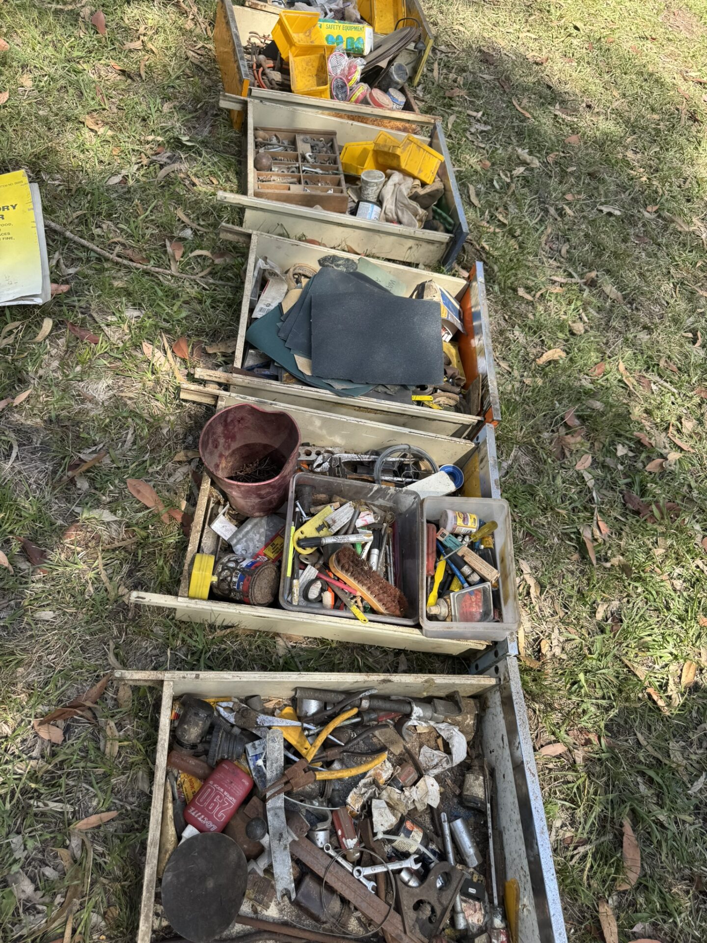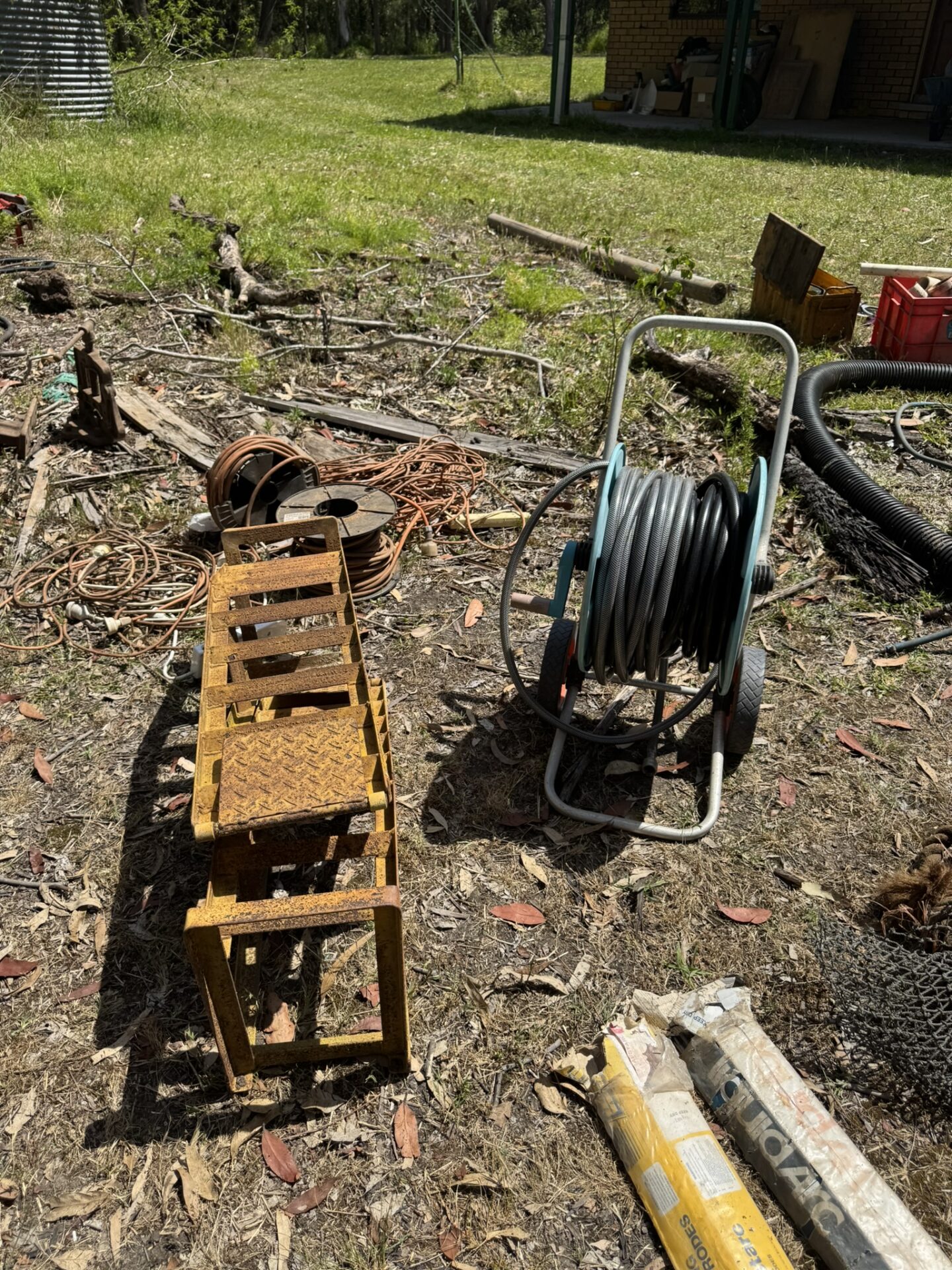 | Various items from the garage like a camera for car installation and odd equipment from the shed. | |