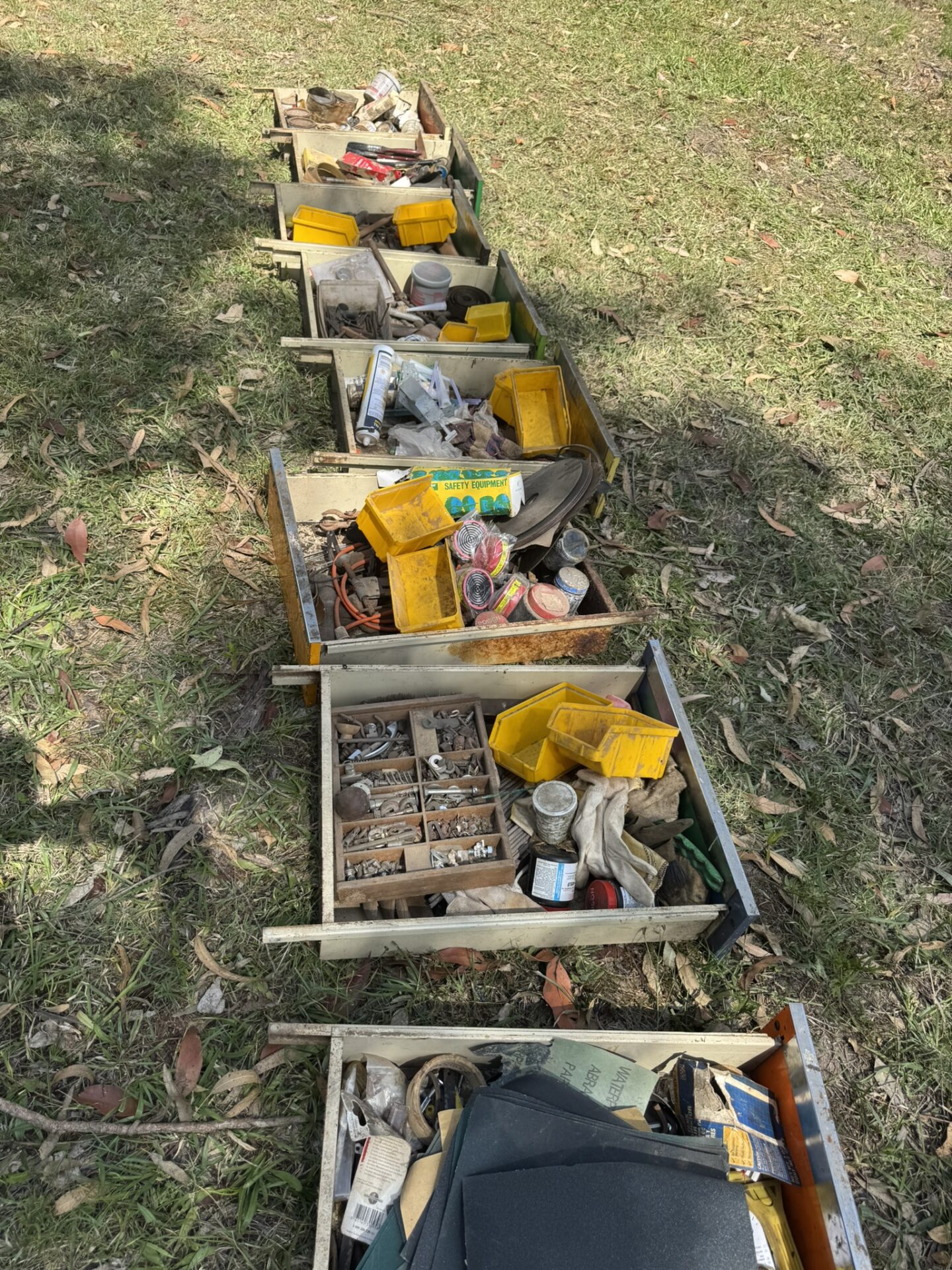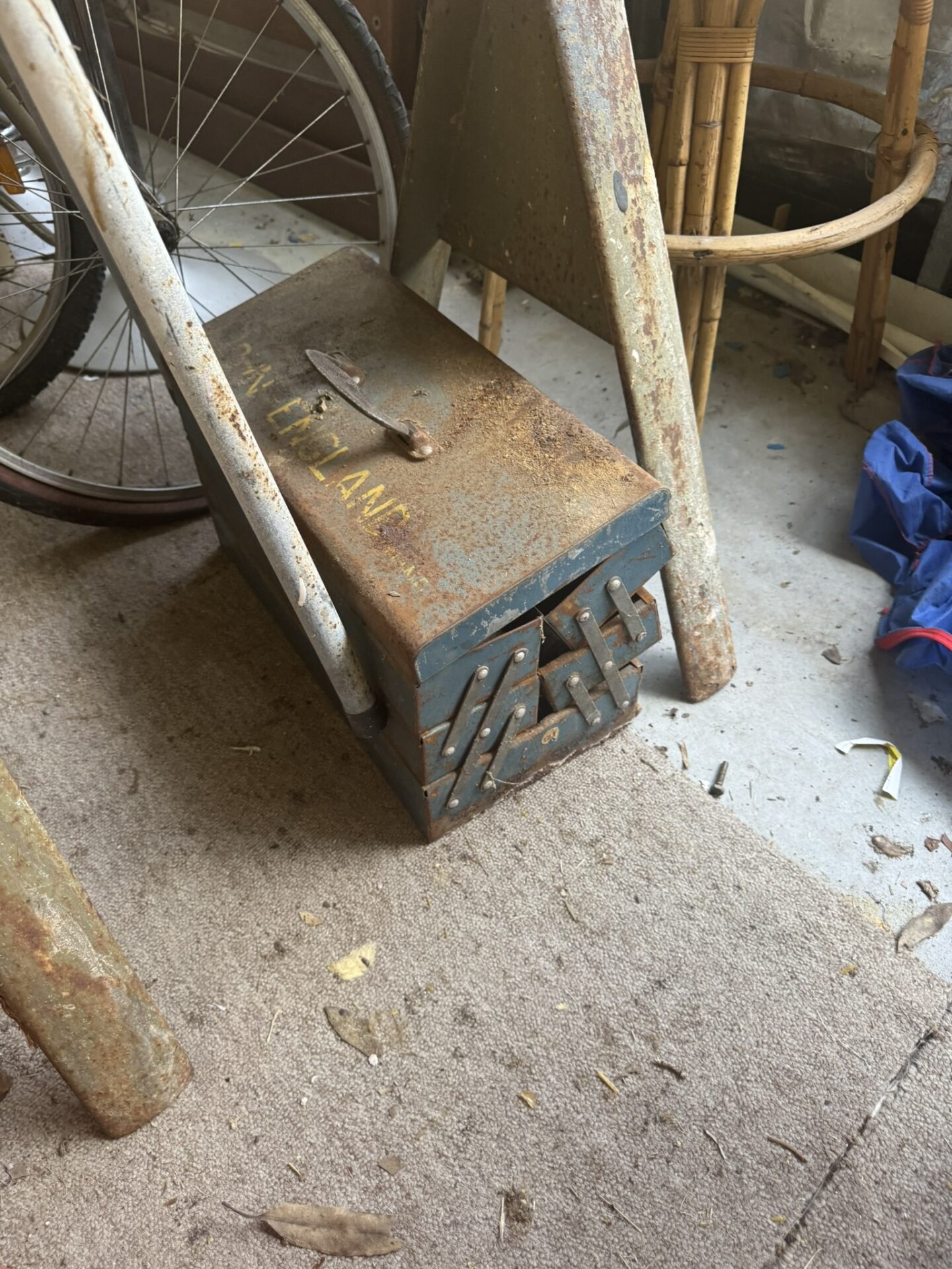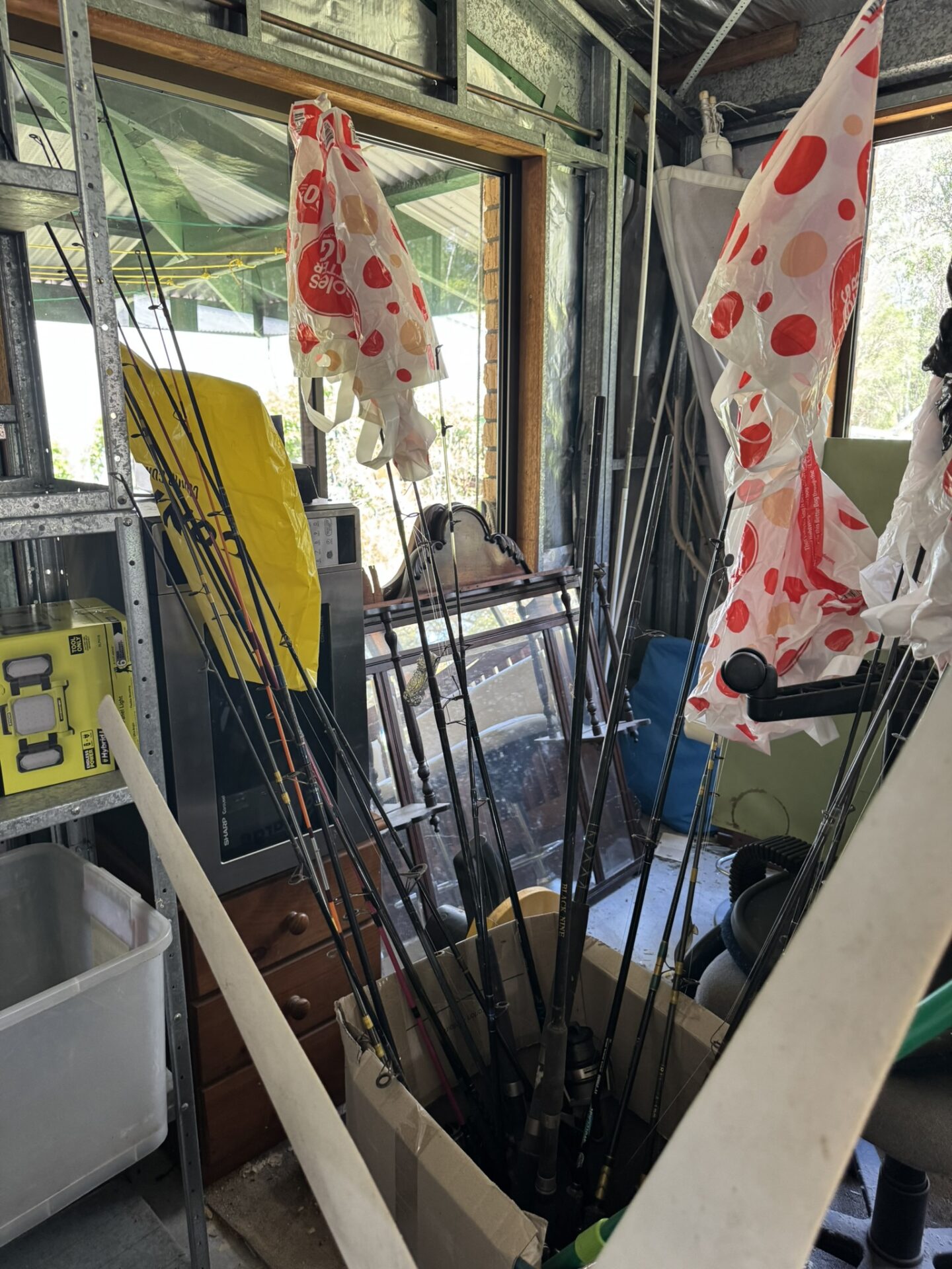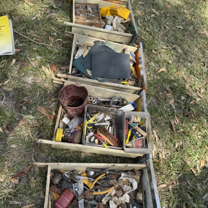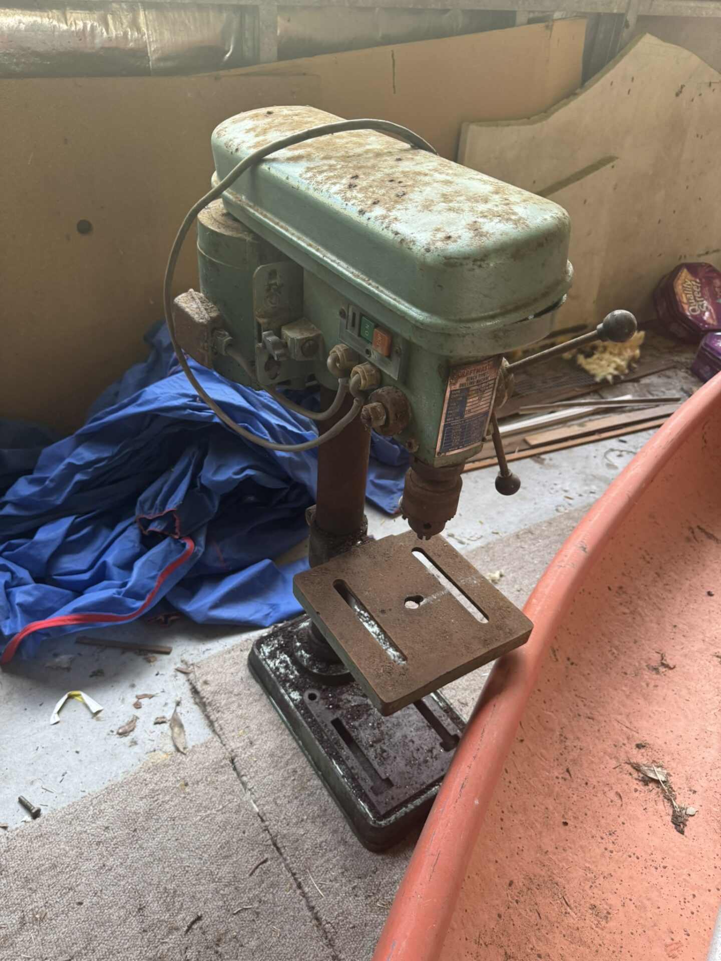 | Various items from the garage like a camera for car installation and odd equipment from the shed. | |