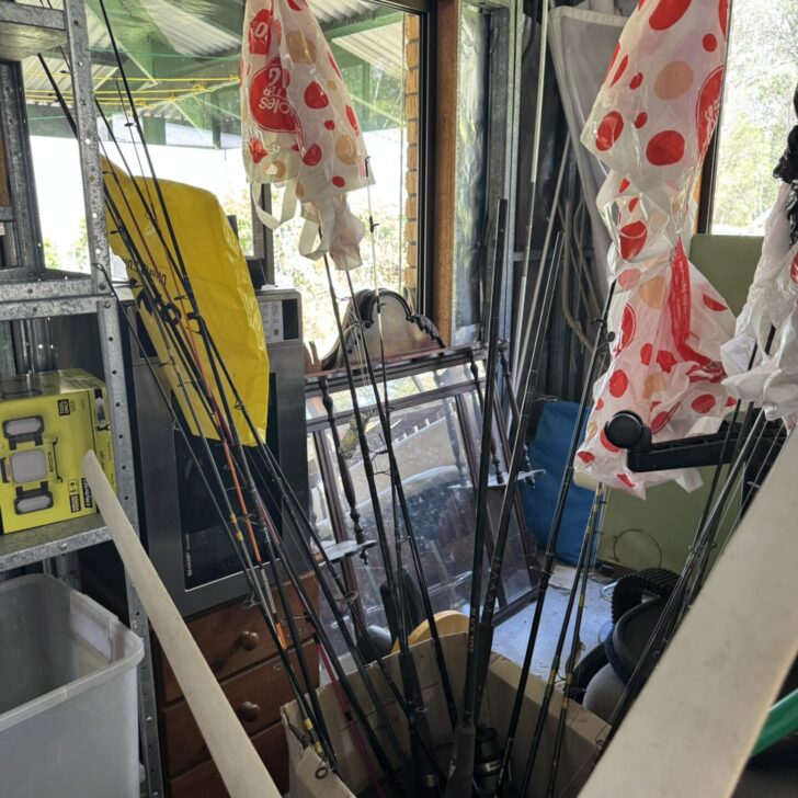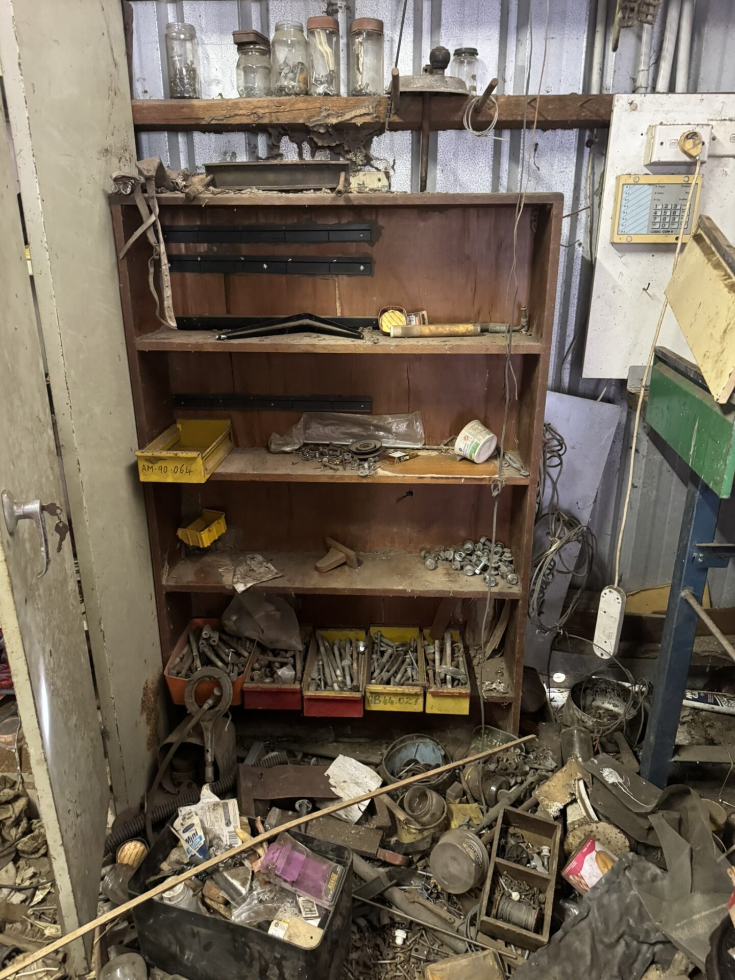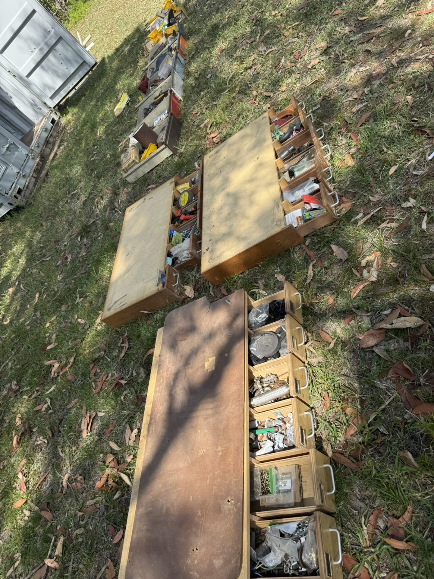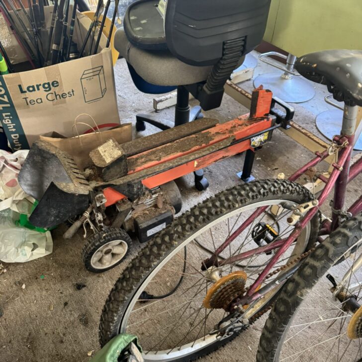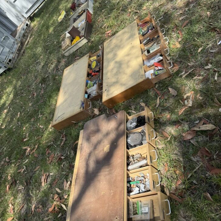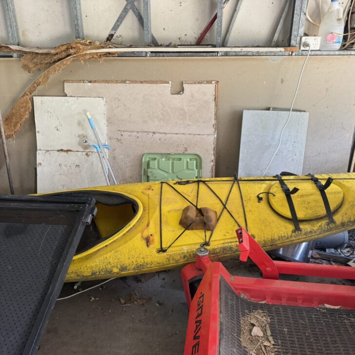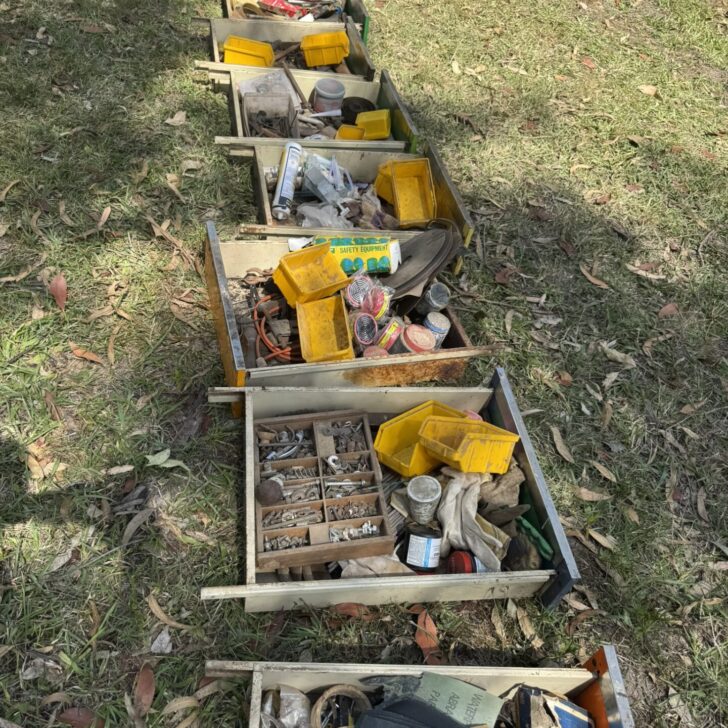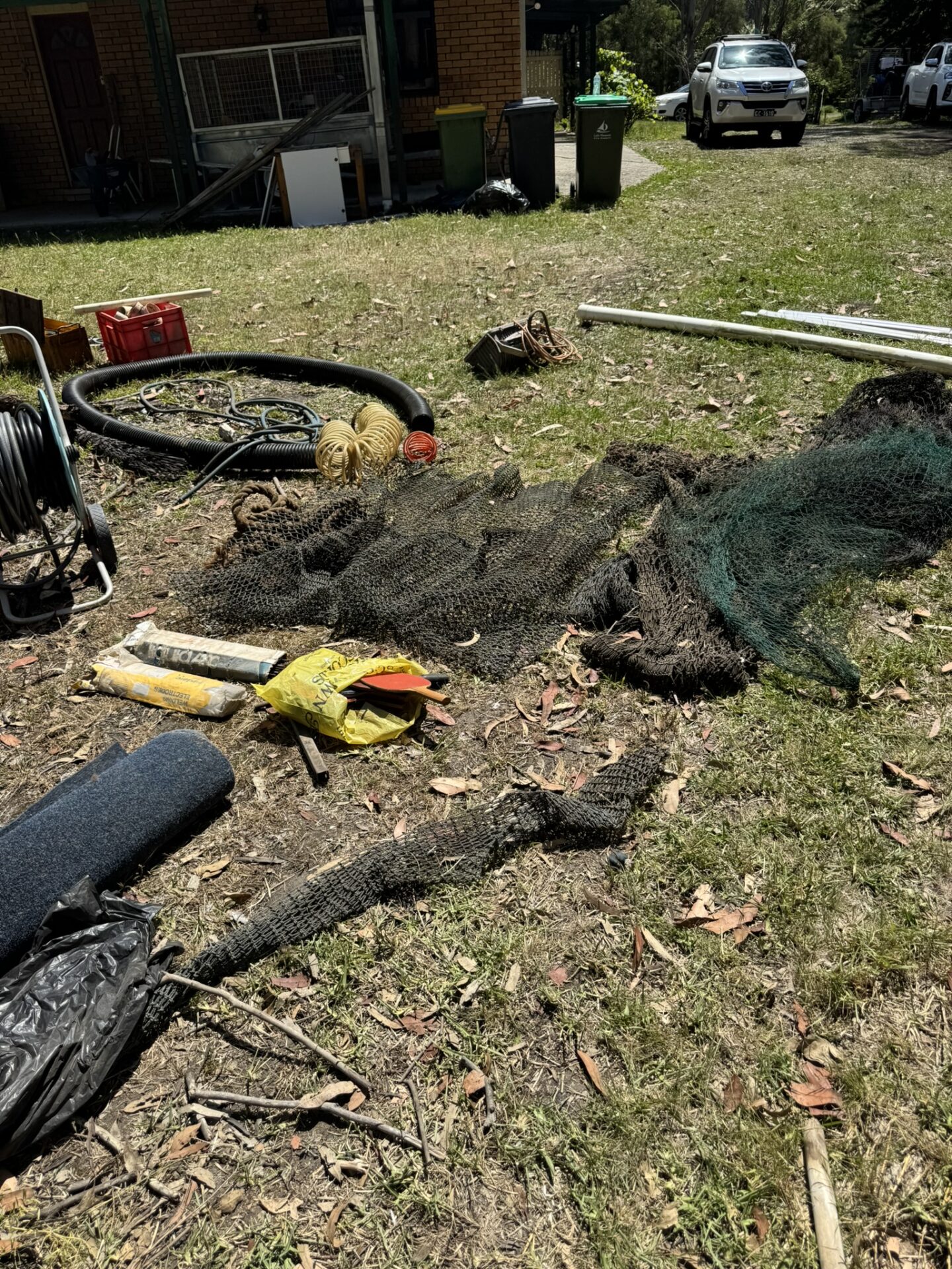 | Various items from the garage like a camera for car installation and odd equipment from the shed. | |