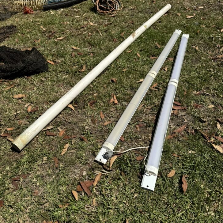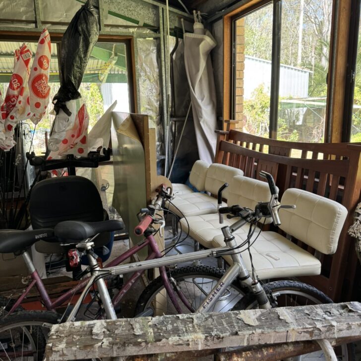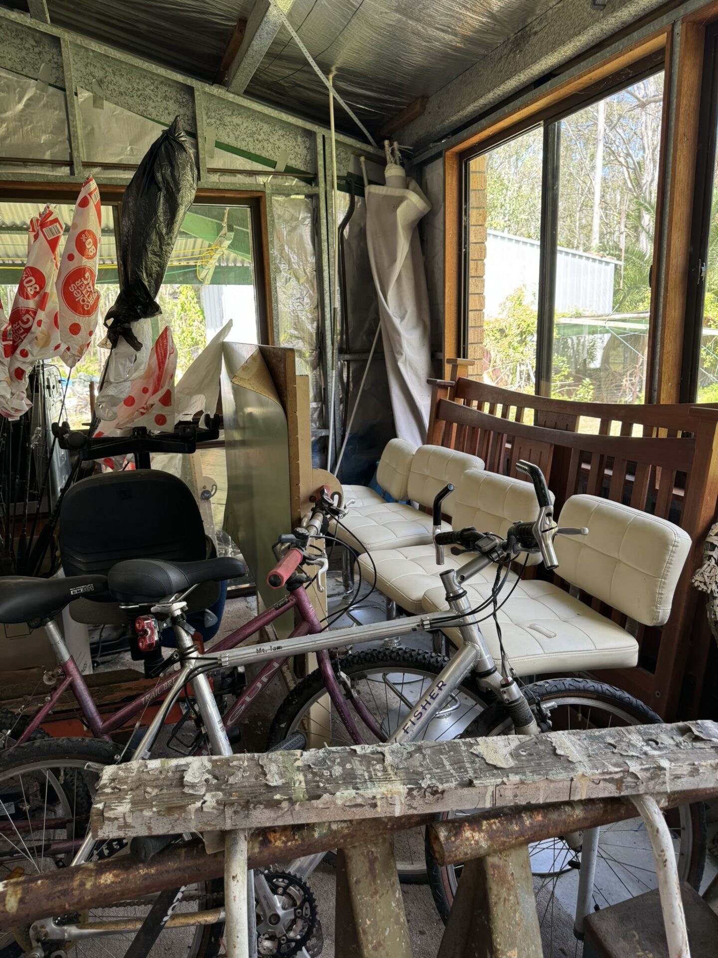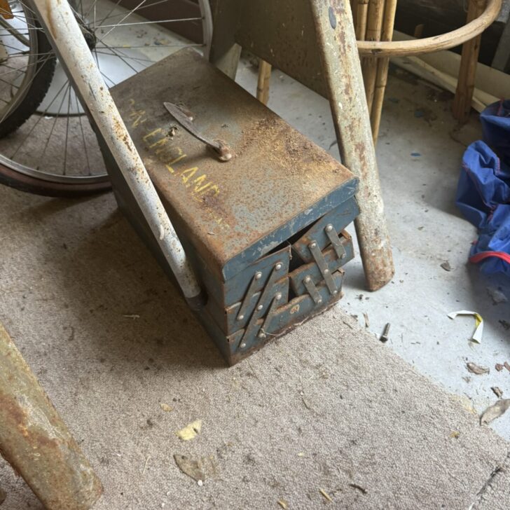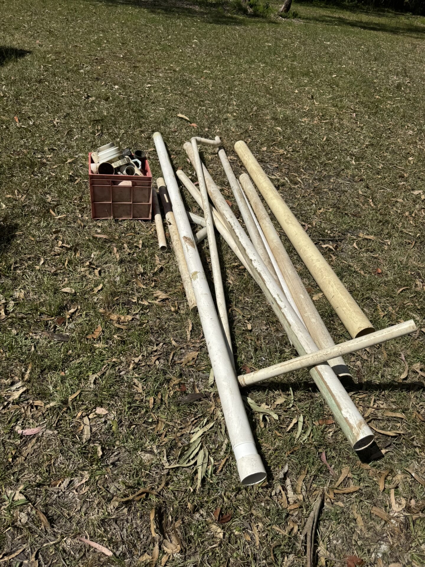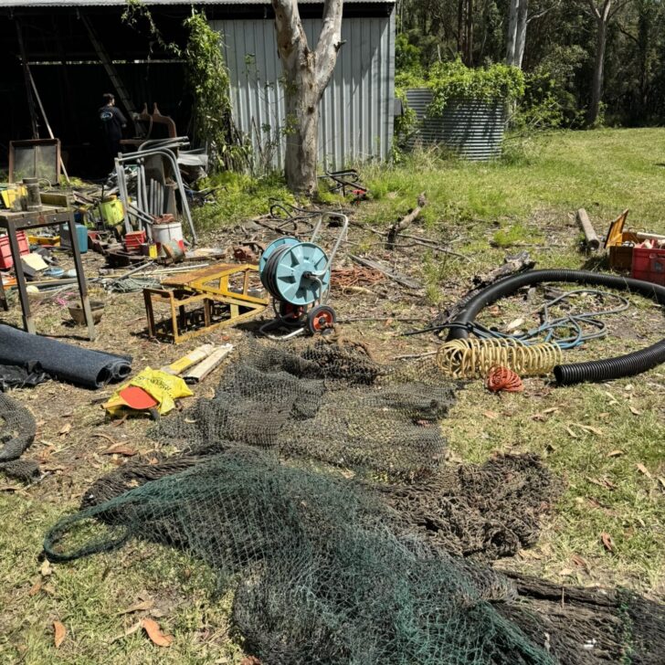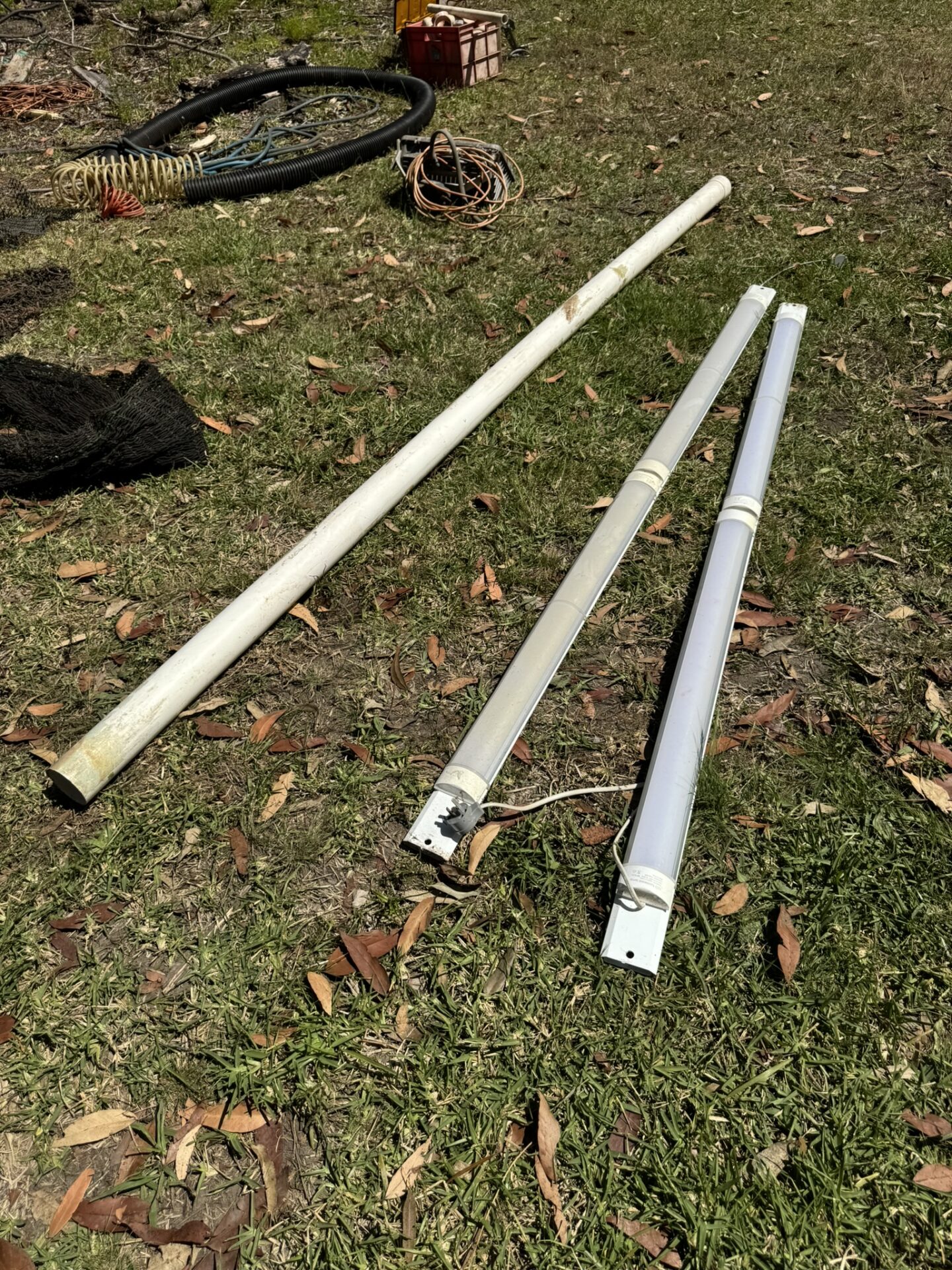 | Various items from the garage like a camera for car installation and odd equipment from the shed. | |