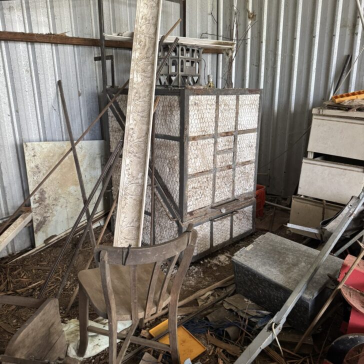 | Possibly a couple of antique sideboards and an oak desk in garage. | |