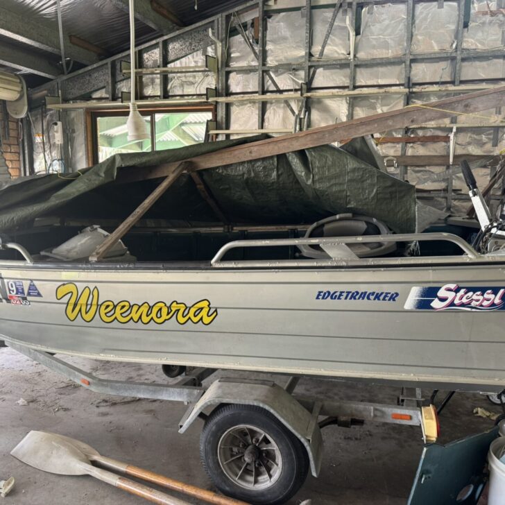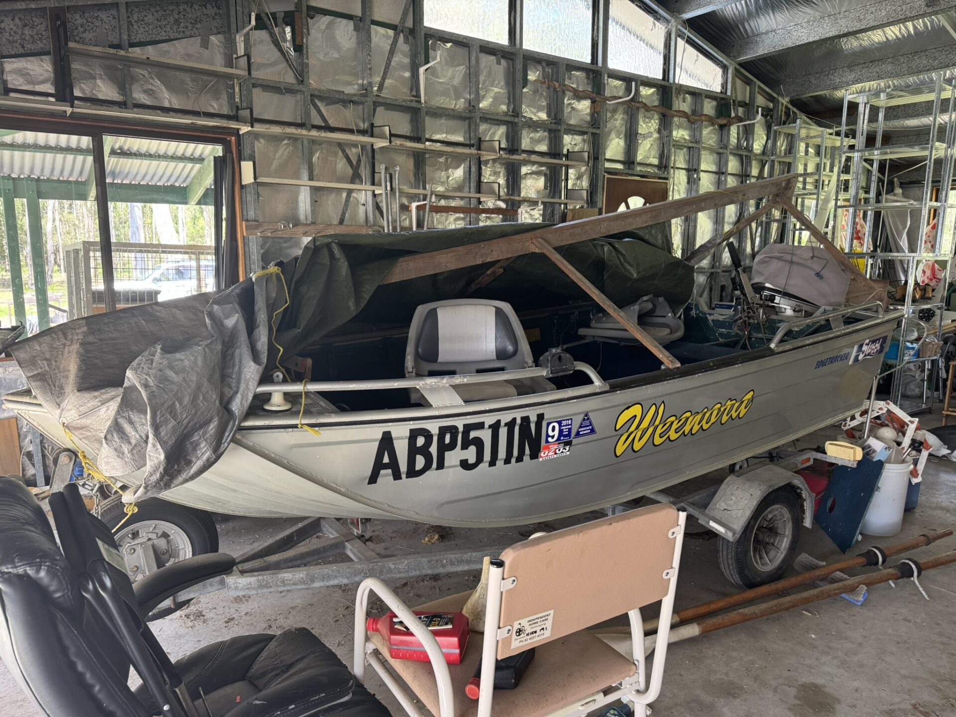 | Boat - tinnie | 3.6 metre Stessl Edgetracker. On brand hot dipped galvanised trailer. Carpeted, motor is a Honda 4 stroke. Trailer in good condition, tryes good. Always garaged and washed after every use. |
