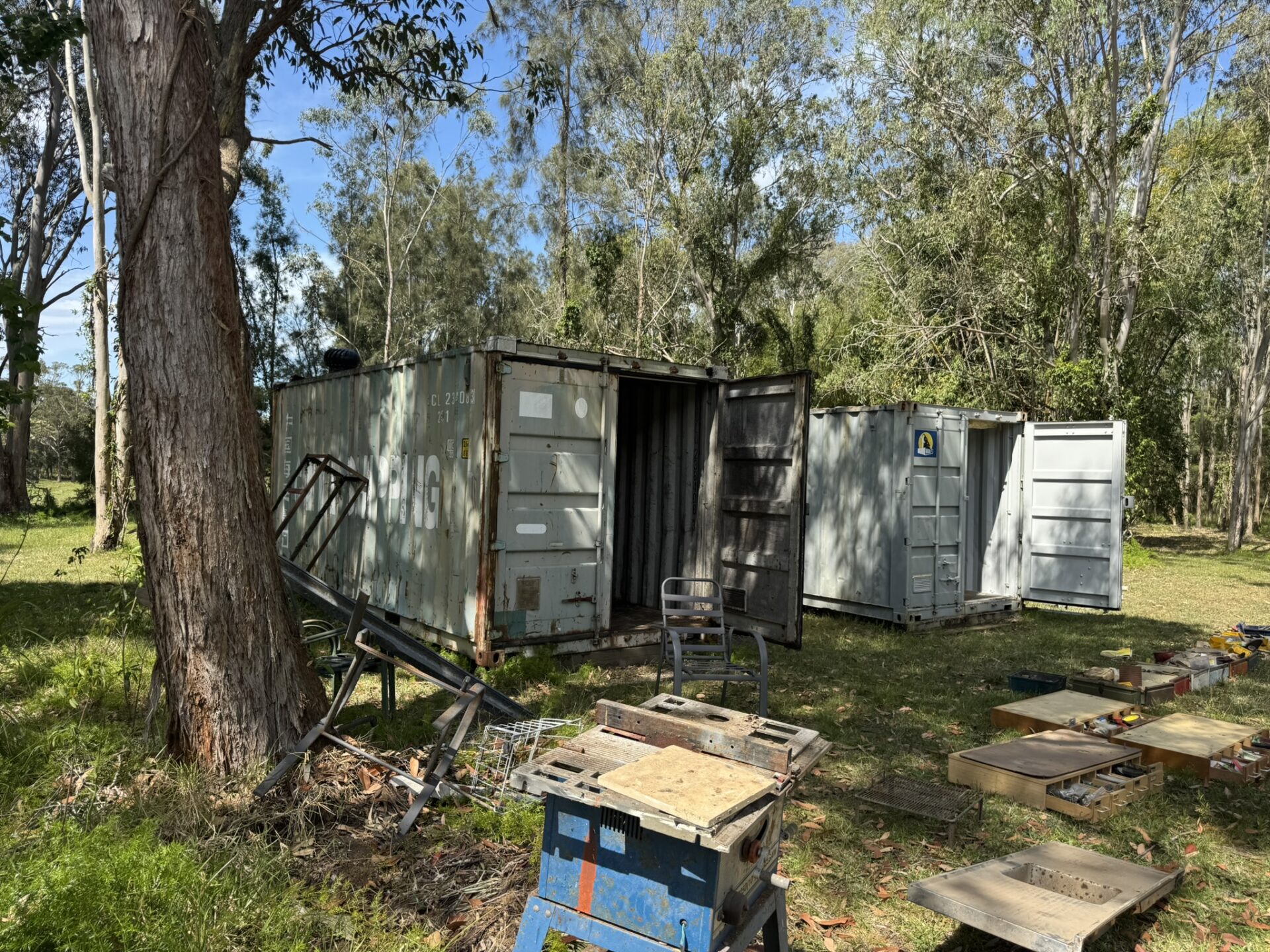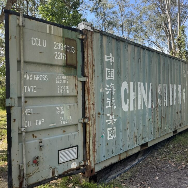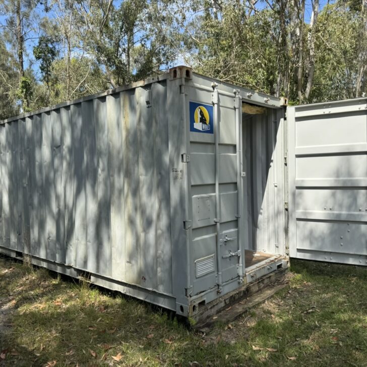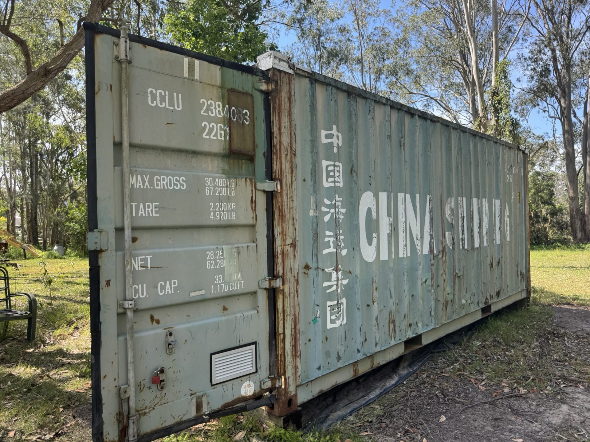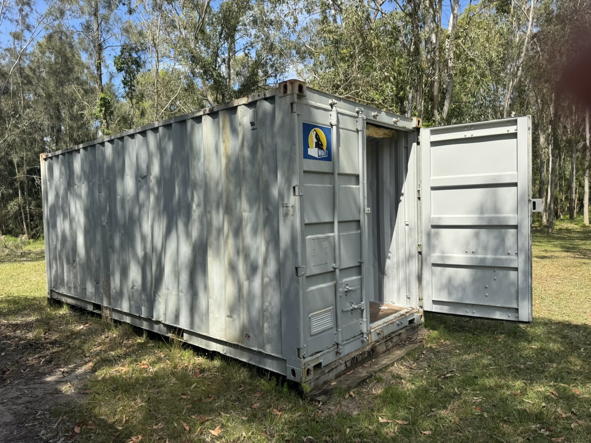 | Grey shipping container | 20 foot. Not leaking, hidden padlock attachmen, doors opening well, roof and wall vent, insulation blanket and rails, sleepers |