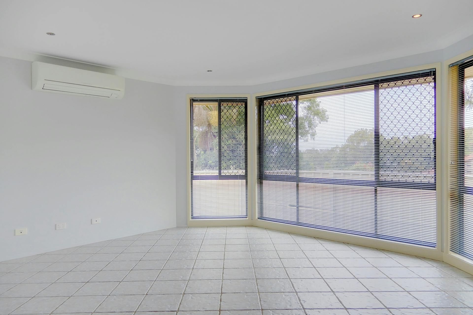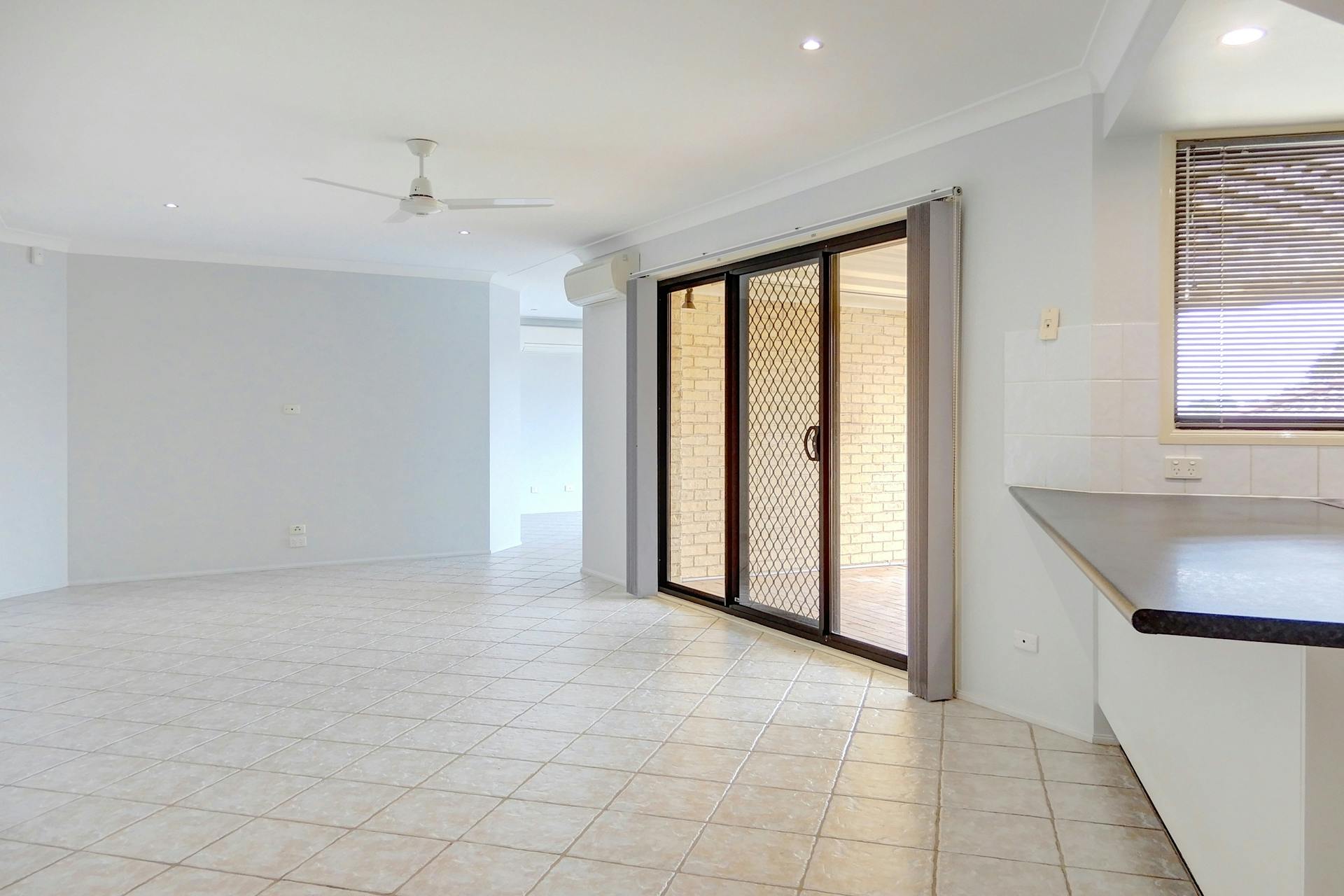 - Generously sized open-plan dining area with ceiling fan and air conditioner