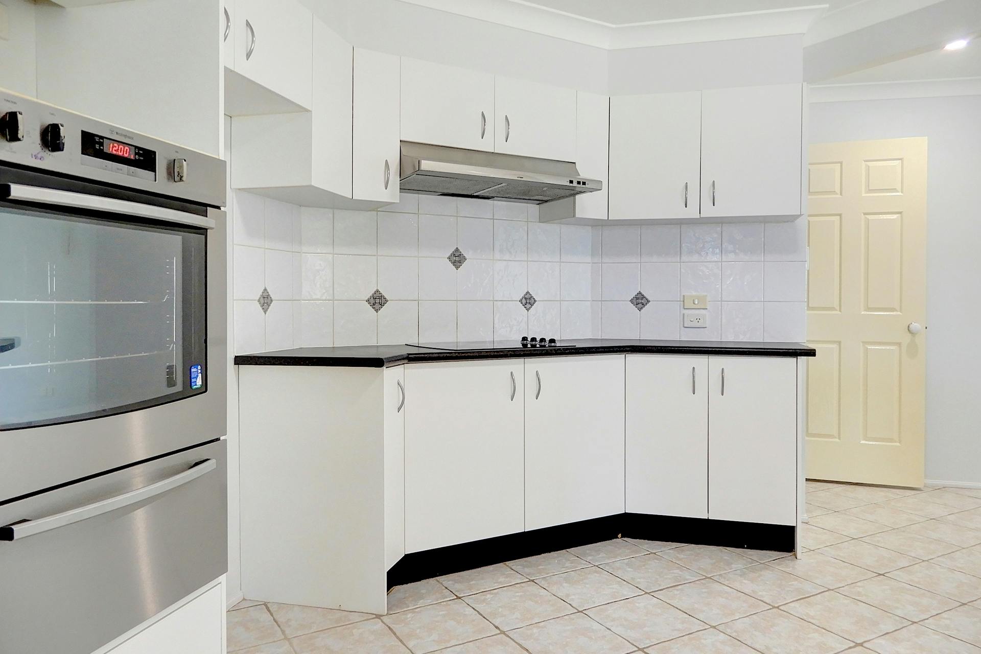 - Spacious kitchen with electric cooking, dishwasher, and ample bench and storage space